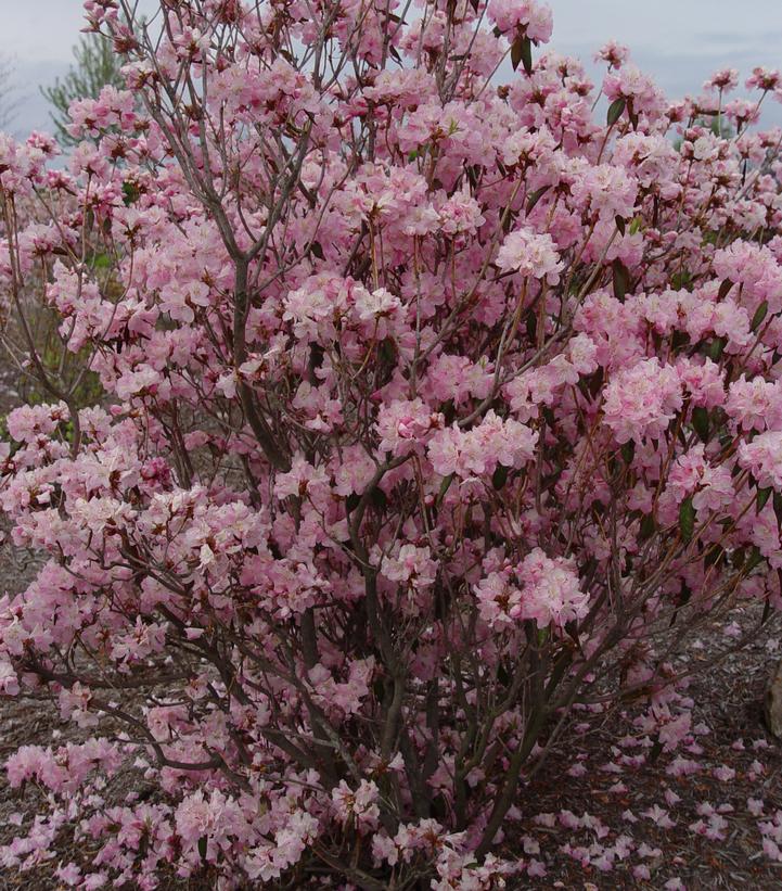 One of the earliest bloomers of all azaleas, this deciduous selection is an explosion of pink color in the early April landscape. Unique in appearance with flowers on leafless stems, this compact grower later reveals a deep green foliage that has a solid landscape presence.