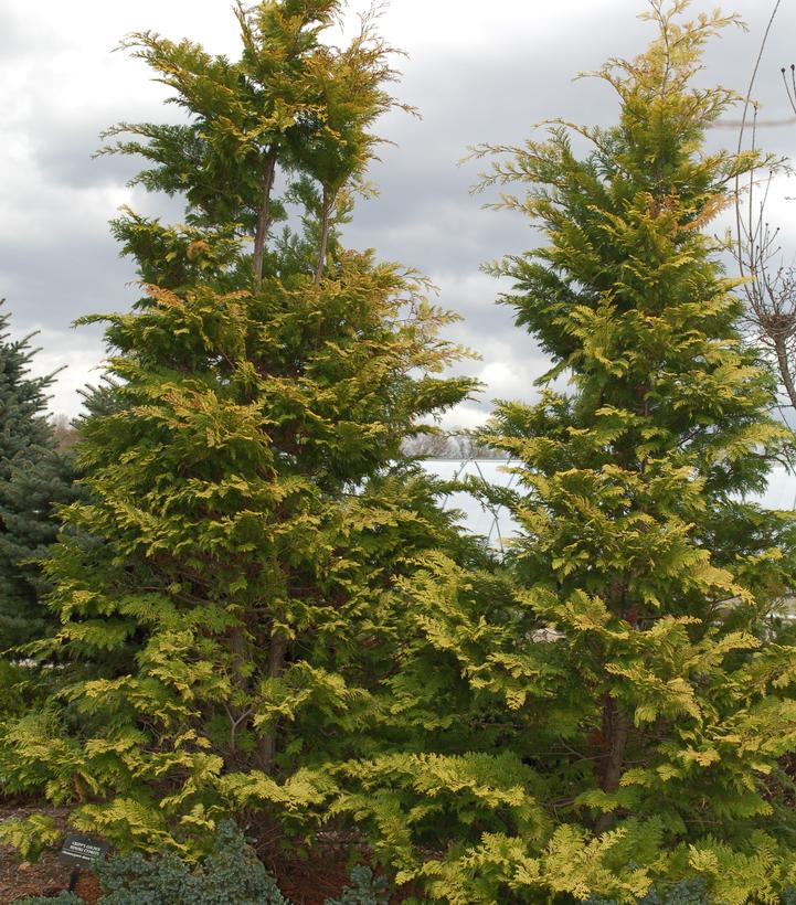If you're seeking an evergreen with real presence, look no further than this selection that has so much personality, it's hard to ignore. This golden, upright, pyramidal large shrub to small tree sized plant is a vigorous grower sending out graceful horizontal branches of spreading, fan-like fronds. 'Crippsii's' coloration will make you look twice with fan-like fine-textured sprays that are tipped with brilliant yellow, gradually becoming gold then bright chartreuse as you progress from outside to in on the plant. 'Crippsii' holds its color well in winter and thrives in sun or light shade, although full sun is best to maximize its outstanding yellow coloring.