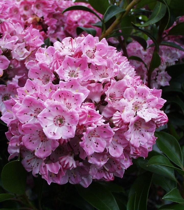 If you're looking for glorious color on a native species, this stunning Mountain Laurel is a must have. The distinctive olive-green foliage is thick and lustrous on well proportioned globe-like branching, giving way in spring to red buds that open into large clusters of rich pink flowers in late May. This is indeed a big, beautiful, round pink globe, covered in masses of magnificent color when in flower. Tolerant of most growing conditions, this sturdy native will thrive in full sun to shade and will function well as a border planting or will shine as a single landscape specimen.