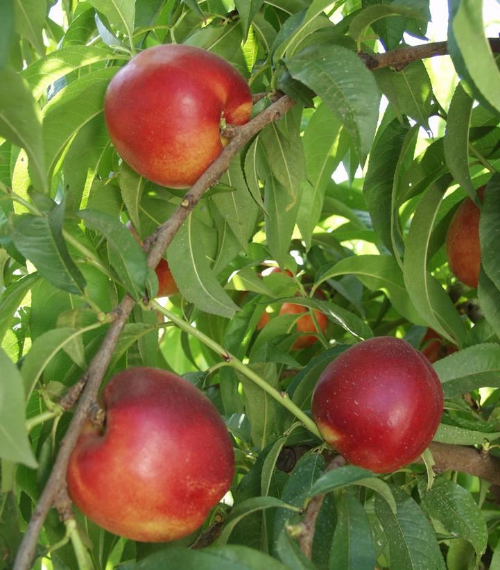 As dependable and as early to fruit as any Nectarine available, 'Independence' sets the standard in Nectarines for the home garden with a tree that is tough enough to grow well and tender enough to produce outstanding numbers of large, gold brushed with red fruit in mid-July. It will be hard to resist eating these backyard delights right when you pick them with their sweet golden flesh and their juicy nature that will have you looking for a sleeve to wipe your face! Like all Nectarines, 'Independence' blooms early so it should be protected against April and May frosts. Self-fruitful.